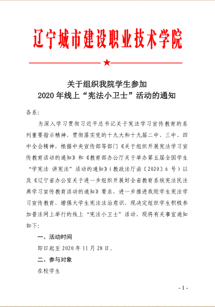 关于组织我院学生参加2020年线上“宪法小卫士”活动的通知