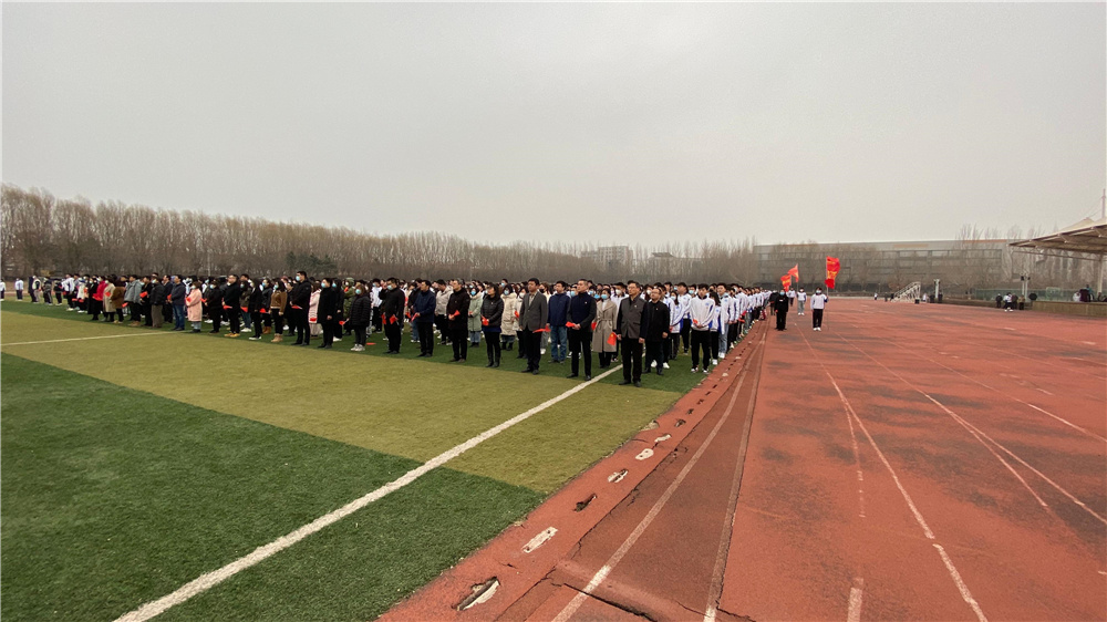 国旗护卫队迈着整齐划一、铿锵有力的步伐护送国旗进场。伴随着雄壮激越的《义勇军进行曲》,鲜艳的五星红旗冉冉升起。全体师生共唱国歌,向国旗行注目礼,表达对祖国的无限热爱和崇高敬意,现场气氛庄严肃穆。