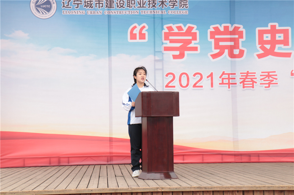 学生代表房产与工程管理系郭子微在发言中向全体学生发出了“学党史,牢记红色初心;强信念,筑牢信念之魂;跟党走,传承红色基因”的倡议,表达了青年学子传承红色基因、担当复兴大任、以优异成绩报效祖国的决心。