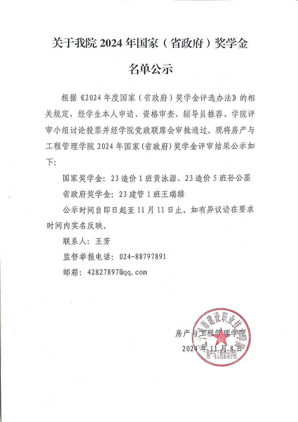 公示丨我院2024年国家(省政府...