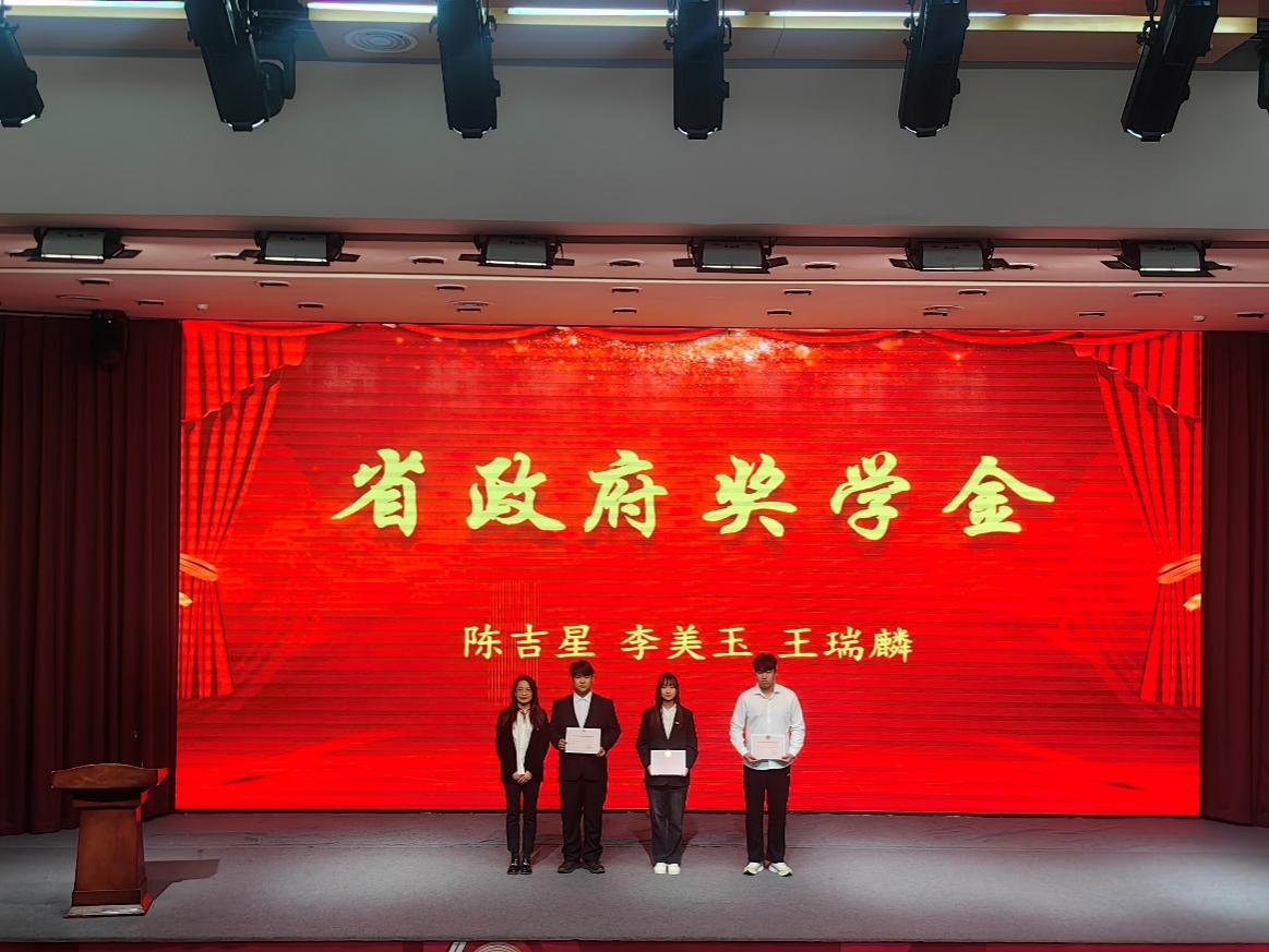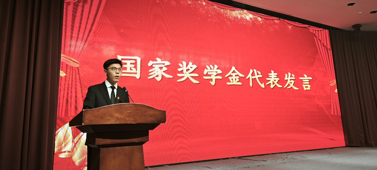 在经验交流环节中,国家奖学金代表黄泳源、辽宁省政府奖学金代表陈吉星、国家励志奖学金代表李俊墺分别讲述了自己的学习经验和奋斗历程。