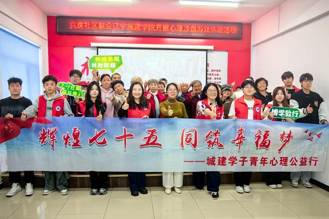 为引领青年学生积极参与社会实践和志愿服务,将心理健康教育融入德智体美劳的育人全过程,近日,学院“生命能量树”心理名师工作室主持人王芳、成员王琛,带领阳光心理社团、房产与管理学院心理部学生干部走进虎石台街道兴虎社区开展“辉煌七十五 同筑幸福梦”城建学子心理公益行——第2站“爱上沙游 共筑幸福”社区居民体验式团体沙盘活动。