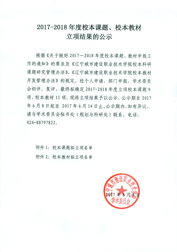 2017—2018年度校本课题、校本教材拟立项结果的公示