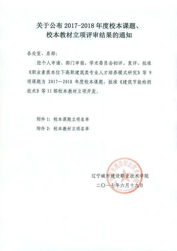 关于公布2017-2018年度校本课题、校本教材立项评审结果的通知