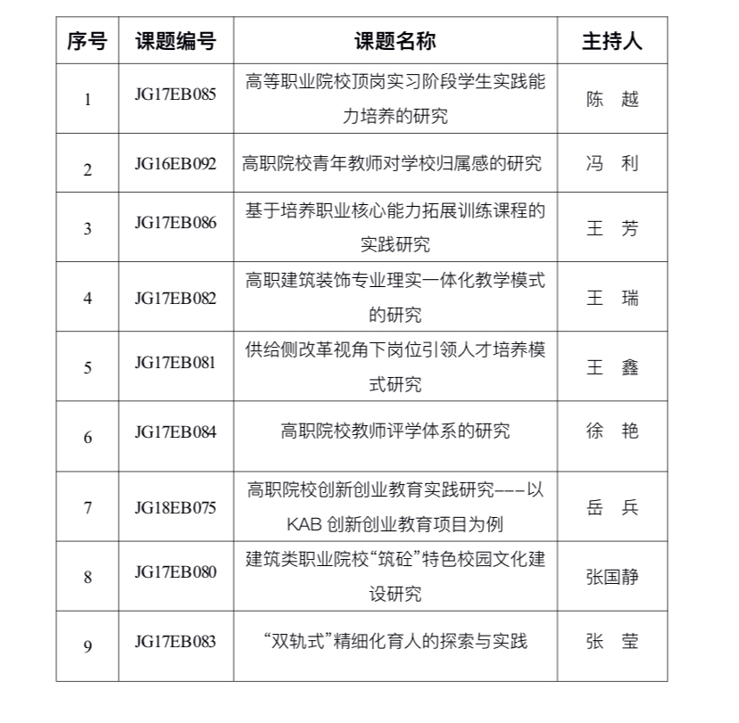 近日,在辽宁省教育科学规划领导小组办公室组织的2019年度“十三五”规划课题结题评审中,我院申报结题的《高等职业院校顶岗实习阶段学生实践能力培养的研究》等9项课题顺利结题。