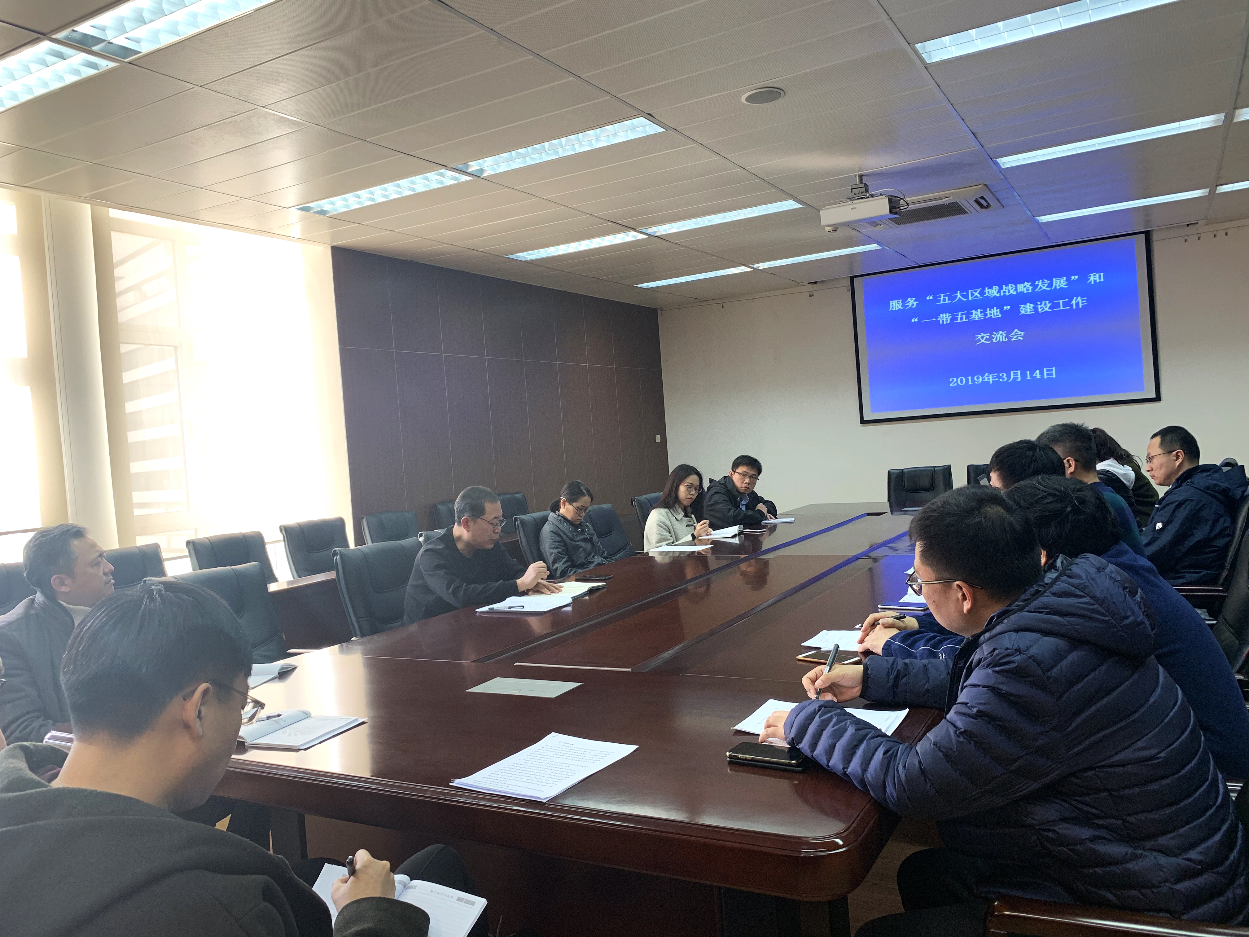 为贯彻落实省委、省政府关于“五大区域发展战略”和“一带五基地”建设工作,结合省教育厅统一部署,我院于2019年3月14日召开“五大区域战略发展”和“一带五基地建设工作”交流会。交流会由规划与科研处尹志富处长主持,各部门负责人参加会议。