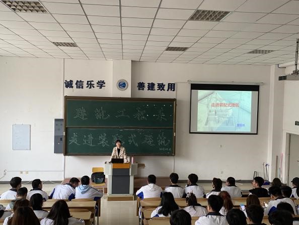 董丽娟老师主要从装配式建筑的特点、种类和体系建设等方面向同学们介绍了“走进装配式建筑”的相关内容,讲座现场气氛热烈,效果较好。