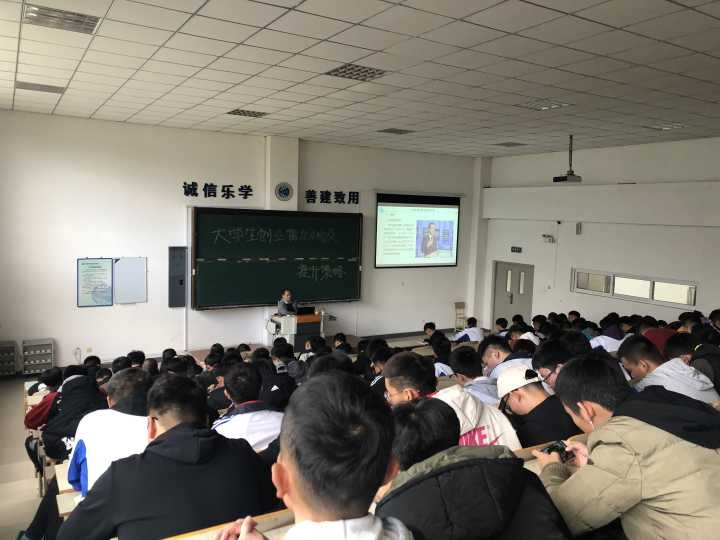 讲座上,崔鹏飞老师主要从大学生的创新创业背景及现状、大学生为什么要创业、创业的优势和劣势、大学生创业的准备以及大学生创业的时机与模式五个方面向学生们介绍了创新创业的相关情况,报告中着重介绍了国家及高校对于学生创业给予的支持及优惠政策,并结合当代大学生创业的成功案例对学生进行介绍。