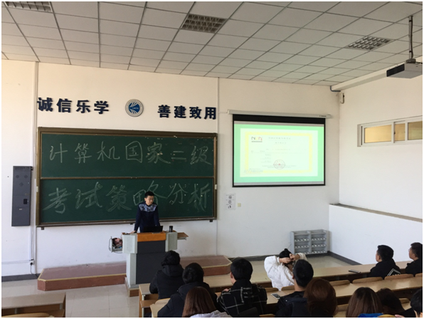 2017年11月3日下午1:30时,以“国家计算机二级考试应试策略分析”为主题的讲座在教学楼阶梯402教室召开,我院基础部计算机教研室章硕老师担任主讲人。
