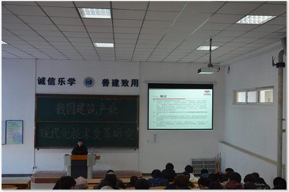 我院建筑工程系于12月9日特邀亚泰集团沈阳现代建筑工业有限公司总工程师张建国做了一场内容丰富的“我国建筑产业现代化技术变革研究”专题报告会。本次报告会由建筑工程系王鑫老师主持,15产业化、15监理等班级学生参加,同时报告会也吸引了众多相关专业的教师。