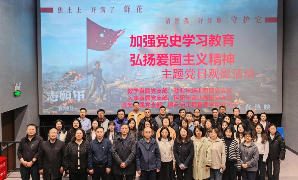 为持续深入开展党史学习教育,弘扬爱国主义精神,11月8日,教学直属党支部联合就业与培训直属党支部、人事直属党支部、科研与审计直属党支部、党务直属党支部、房产与工程管理学院党总支开展“加强党史学习教育 弘扬爱国主义精神”主题党日观影活动,组织党员观看电影《志愿军:存亡之战》。学校党委副书记、院长徐长伟参加活动。