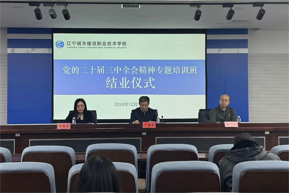 为深入学习贯彻党的二十届三中全会精神,进一步提升干部履职素养能力,推动完成全面振兴新突破三年行动各项任务,助推学校改革发展稳定,12月10日至19日,学校举办学习贯彻党的二十届三中全会精神专题培训班。19日下午,培训班举行结业仪式,校党委书记于海臣,党委副书记、院长徐长伟,党委委员、纪委书记王艳东出席结业式,结业式由王艳东主持。