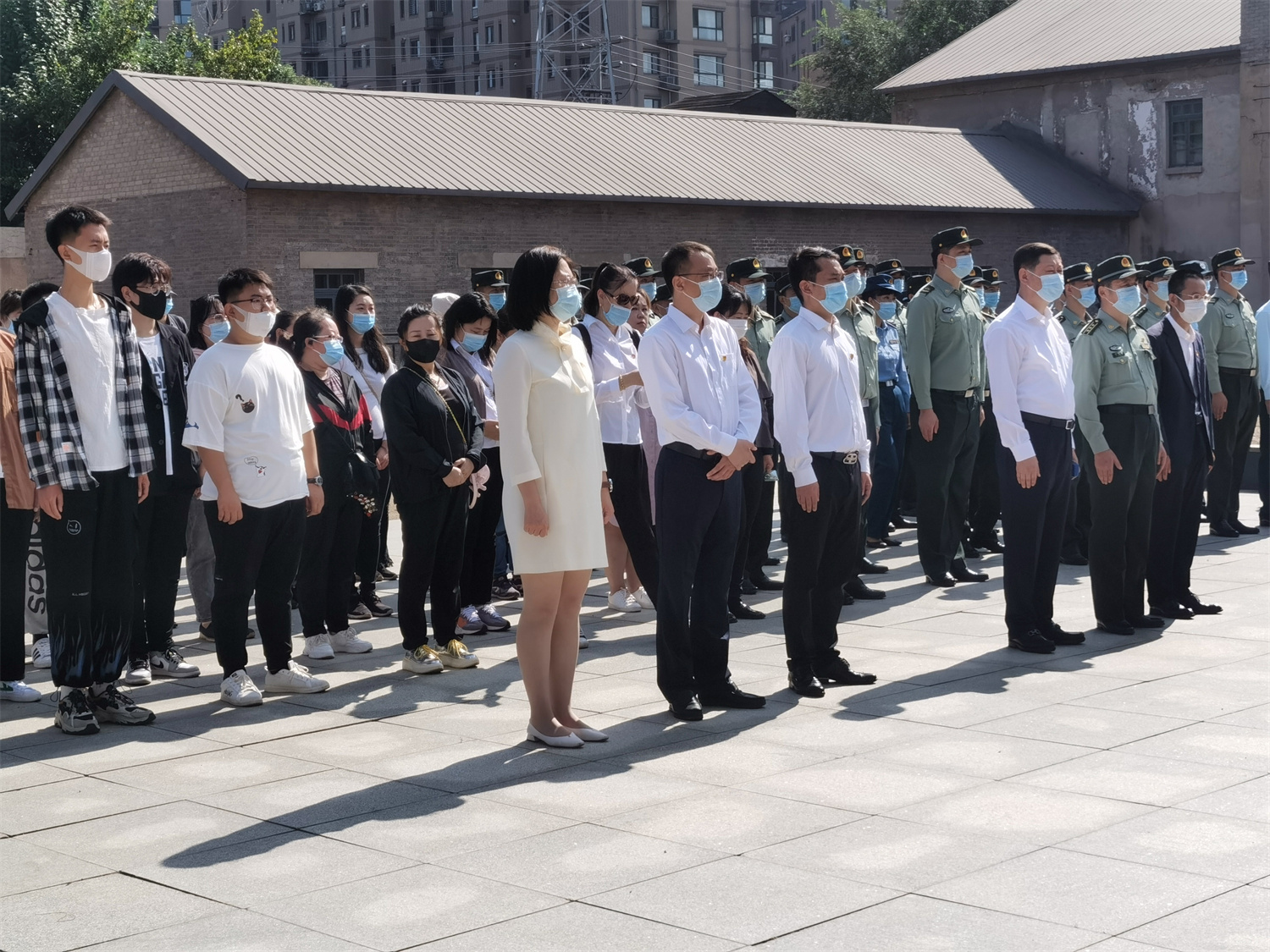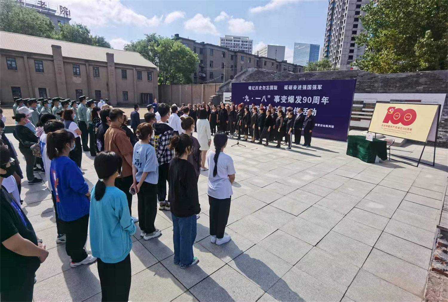 为铭记历史、勿忘国耻、缅怀先烈,加强爱国主义和国防教育,9月17日上午,我院房产与工程管理系党总支联合中共大东区委宣传部、辽宁省军区沈阳第九离职干部休养所、沈阳二战盟军战俘营旧址陈列馆、《辽宁党建网》、大东区双拥办等多家单位在沈阳二战盟军战俘营旧址陈列馆遗址广场举办“铭记历史勿忘国耻,砥砺奋进强国强军—— ‘九·一八’事变爆发90周年国防教育主题宣传活动”。93岁的抗战老兵宋英、91岁的抗战老兵祁文章两位革命老前辈为现场参加活动的130多名党员干部群众和青年学子上了一堂生动的爱国主义教育和国防教育课。