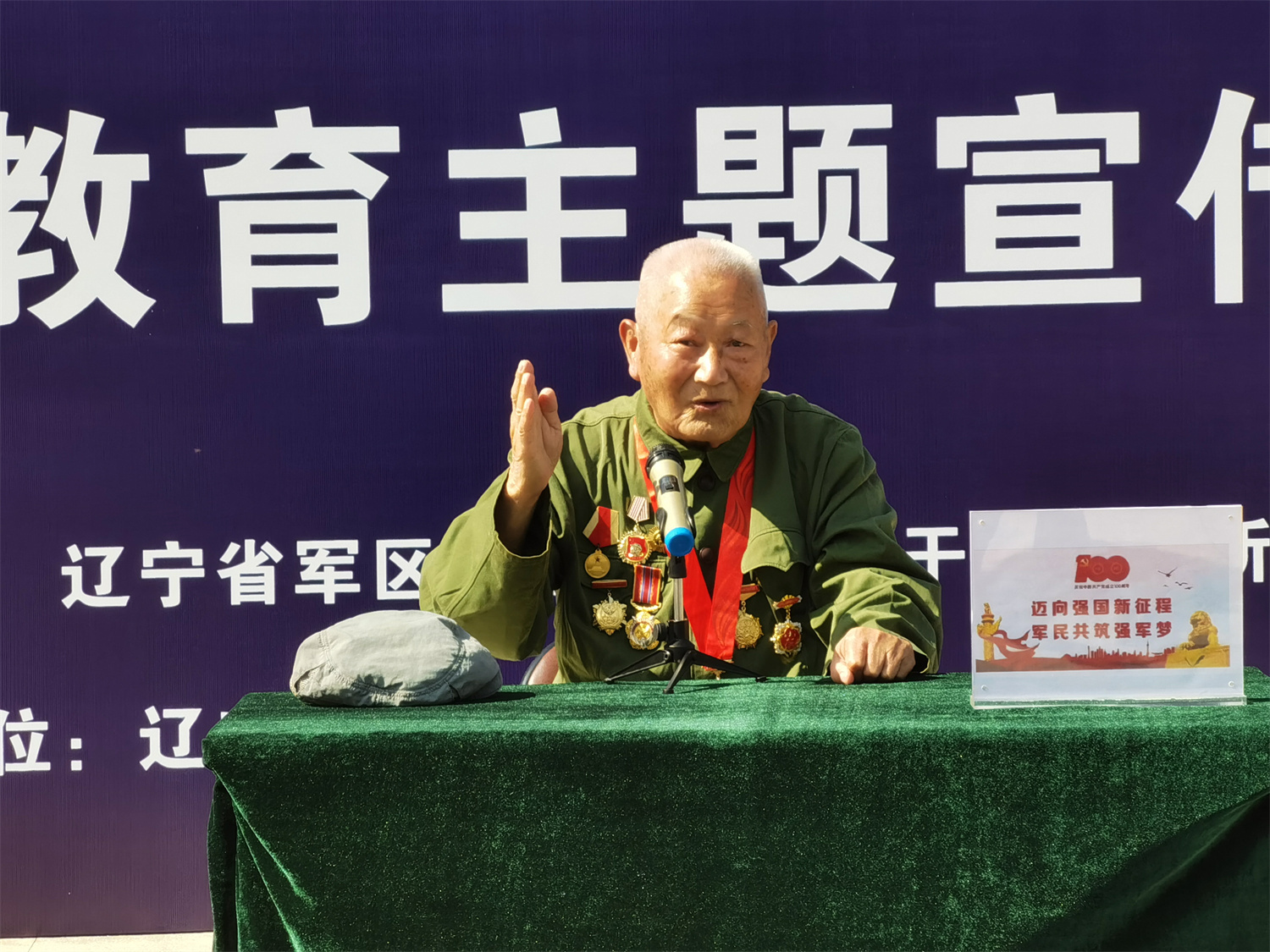 活动在庄严的国歌声中开始,来自辽宁省军区沈阳第九离职干部休养所93岁的抗战老兵宋英首先上台做国防教育报告。宋英是一位1945年入伍的抗战老兵,经历抗日战争、解放战争、抗美援朝战争洗礼,参加过辽沈战役,平津战役和渡江战役,湘南、江西剿匪,投身中大小战役战斗几百次,荣立过战功,获得过荣誉勋章和纪念抗战胜利功勋章,当他得知要邀请他为“九·一八“事变爆发90周年国防教育主题宣传活动做国防教育报告时,他克服身体不适的困难前来参加宣传活动,用亲身经历为大家讲述他在抗日战争战场的战斗经历,宋英的报告让现场与会人员感受到了他一心向党,为民族解放、人民幸福甘洒热血、奉献青春的军人气节和风范;我院大学生代表的诗朗诵《勿忘九一八,吾辈当自强》歌颂伟大的抗战精神和中华儿女不屈不挠的英雄气概,表达立志赓续红色血脉,矢志接续奋斗的青年心声;沈阳二战盟军战俘营旧址陈列馆夕阳红合唱团的30多名老同志表演了大合唱《我爱你中国》表达了他们爱党、爱国、爱社会主义的感激之情。