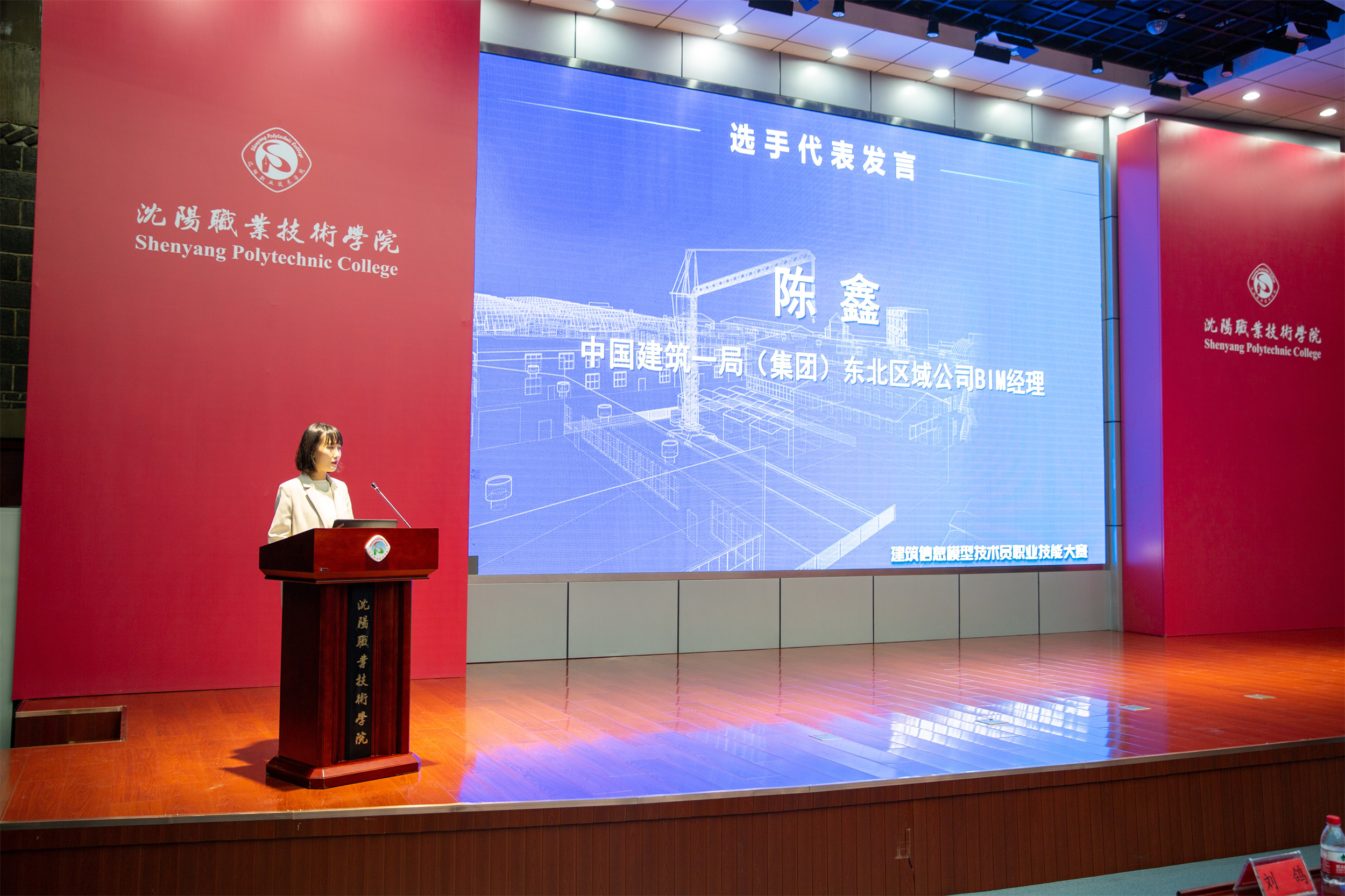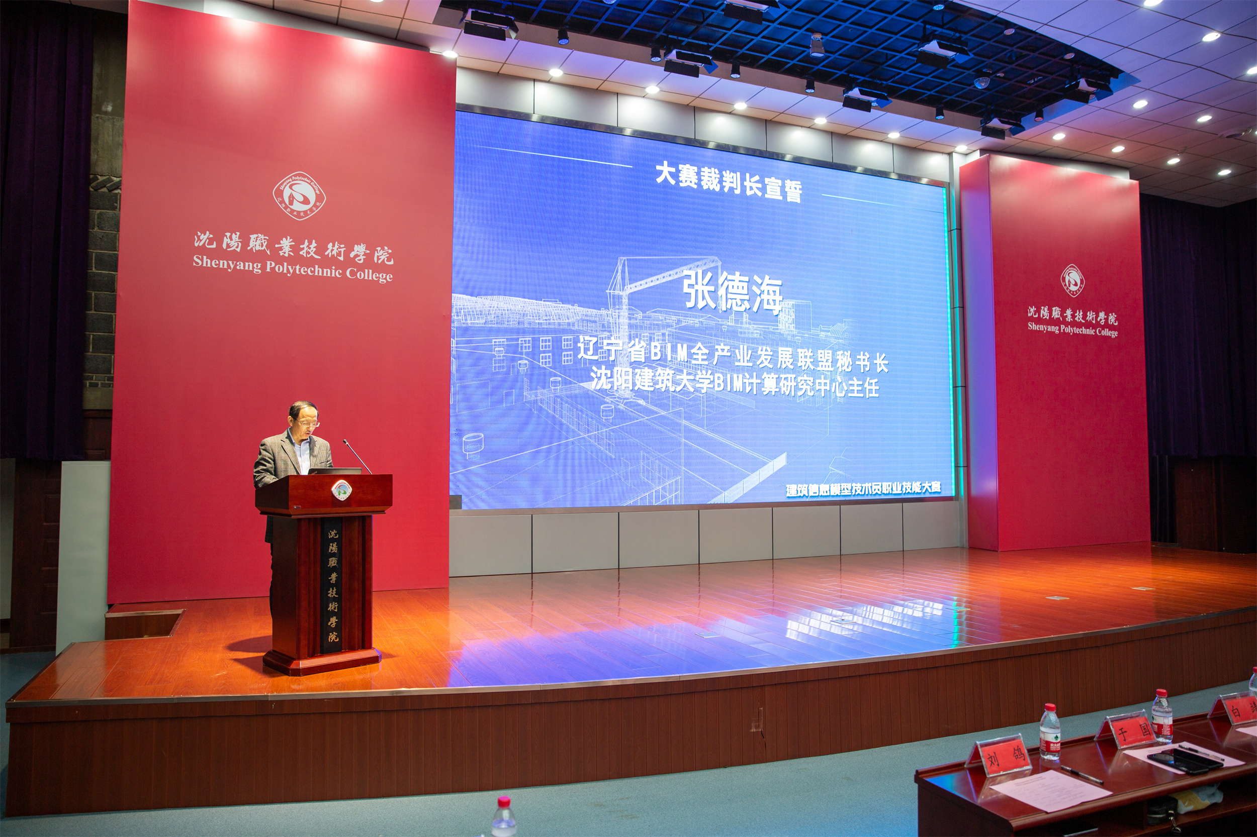 随后,辽宁省BIM全产业发展联盟秘书长张德海、中国建筑一局(集团)东北区域公司 BIM经理陈鑫分别作为裁判员代表和选手代表进行发言。