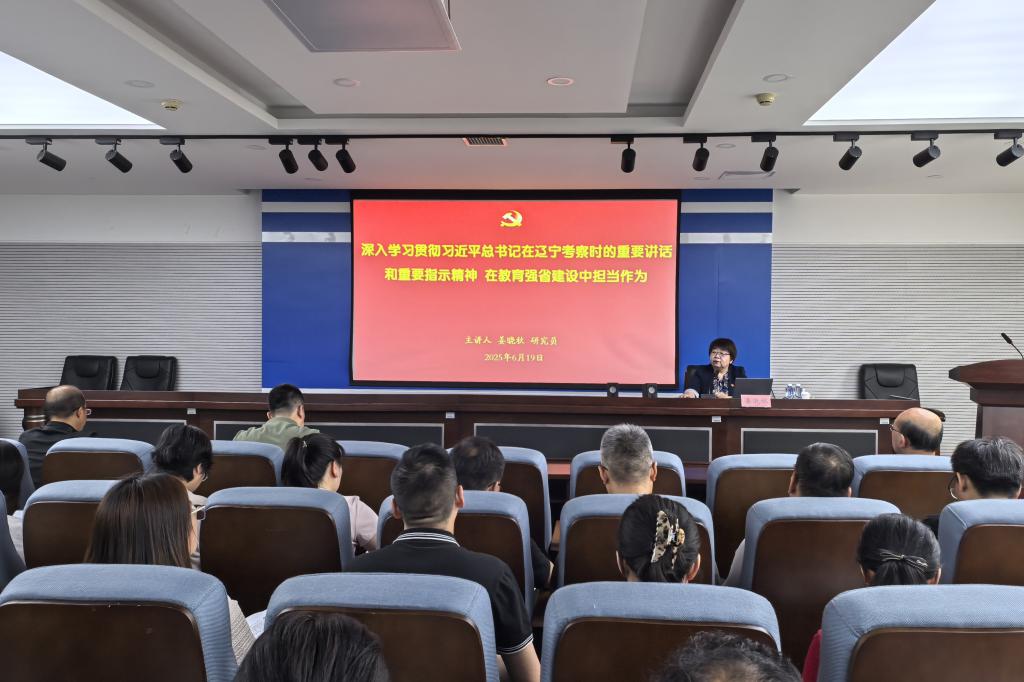 姜晓秋以《深入学习贯彻习近平总书记在辽宁考察时的重要讲话和重要指示精神 在辽宁教育强省建设中担当作为》为题,站在强国建设、民族复兴的高度,深刻解读了习近平总书记重要讲话的重大意义、丰富内涵和战略要求。报告结合贯彻《教育强国建设规划纲要(2024-2035年)》和辽宁教育强省建设的实际,结合辽宁决胜之年决胜之战、谋划“十五五”的实际,对于学校加强和改进思想政治教育、围绕区域产业发展优化专业结构、提升技术技能人才培养质量等方面具有重要启发;姜晓秋运用习近平经济思想、文化思想,梳理了一批学习贯彻习近平总书记重要讲话重大理论研究和智库研究课题,对于学校党员领导干部和广大教师提高理论素养和政策水平,强化职业教育服务地方发展的能力,进一步解放思想、开拓进取、鼓足干劲、真抓实干,为建设教育强省担当作为具有重要的推动作用。