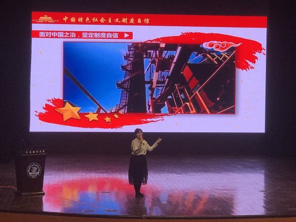 我院辅导员王琛以《谈制度自信》为题,围绕中国特色社会主义制度的来源、内容、价值体现,结合学生身边鲜活案例、中西对比、70年辉煌成就等情况进行理论宣讲,她以扎实的基本功底和出色的演讲能力,充分展示了我院辅导员的良好职业素质能力和昂扬向上的精神风貌,在本专科辅导员同台竞技的情况下,以出色的表现最终获得“情景式理论宣讲”一等奖。