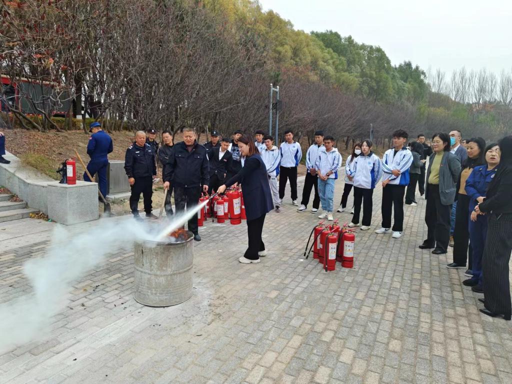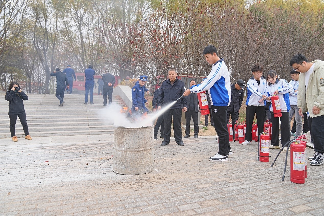 灭火器使用方法培训与实操演练活动中,教官先为师生讲解了灭火器的正确使用方法和注意事项,然后对灭火器的使用进行亲自示范,随后师生代表进行亲自体验,按照使用规范操作灭火器,现场进行灭火演练。
