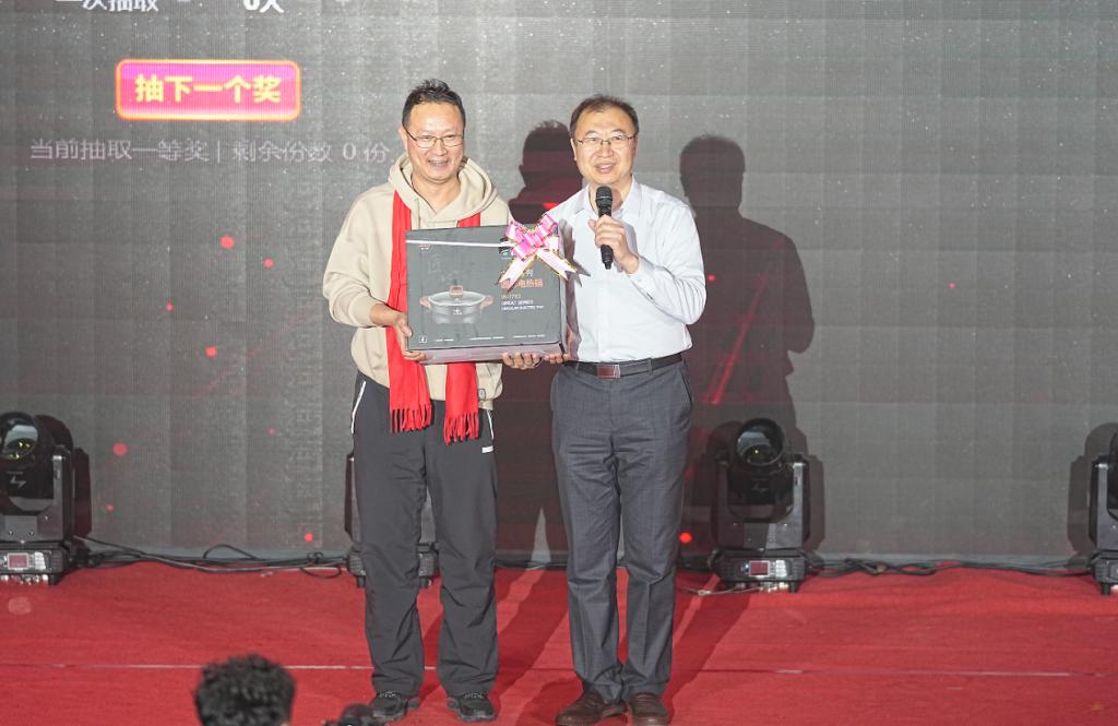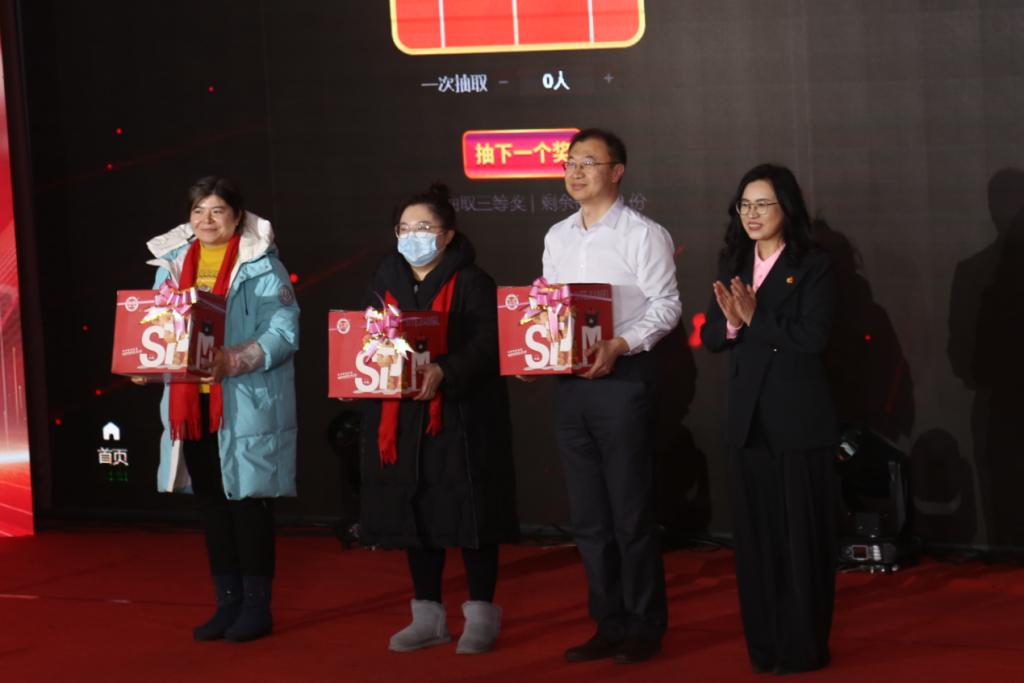 联欢会中间,三位学院领导还抽取了幸运观众,抽奖环节台上台下互动频繁,高潮迭起,笑声不断。