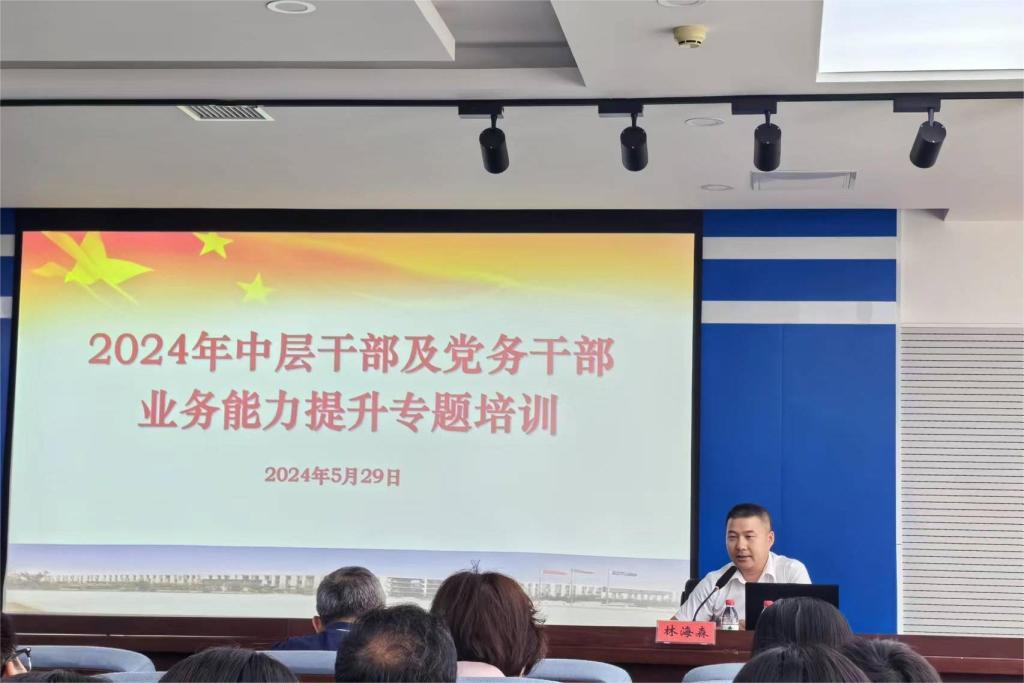 为贯彻落实习近平总书记对党的建设和干部工作的重要指示要求,切实提高学校干部队伍的理论素养和履职能力,结合2024年培训工作安排,5月29日,学校组织开展中层干部及党务干部集中教育系列培训。本次培训邀请沈阳航空航天大学招标采购办公室党支部书记林海森作题为《着力构建高校院(系)“一融双高”特色品牌建设新格局》的专题讲座。培训会由党委组织部部长李长友主持。