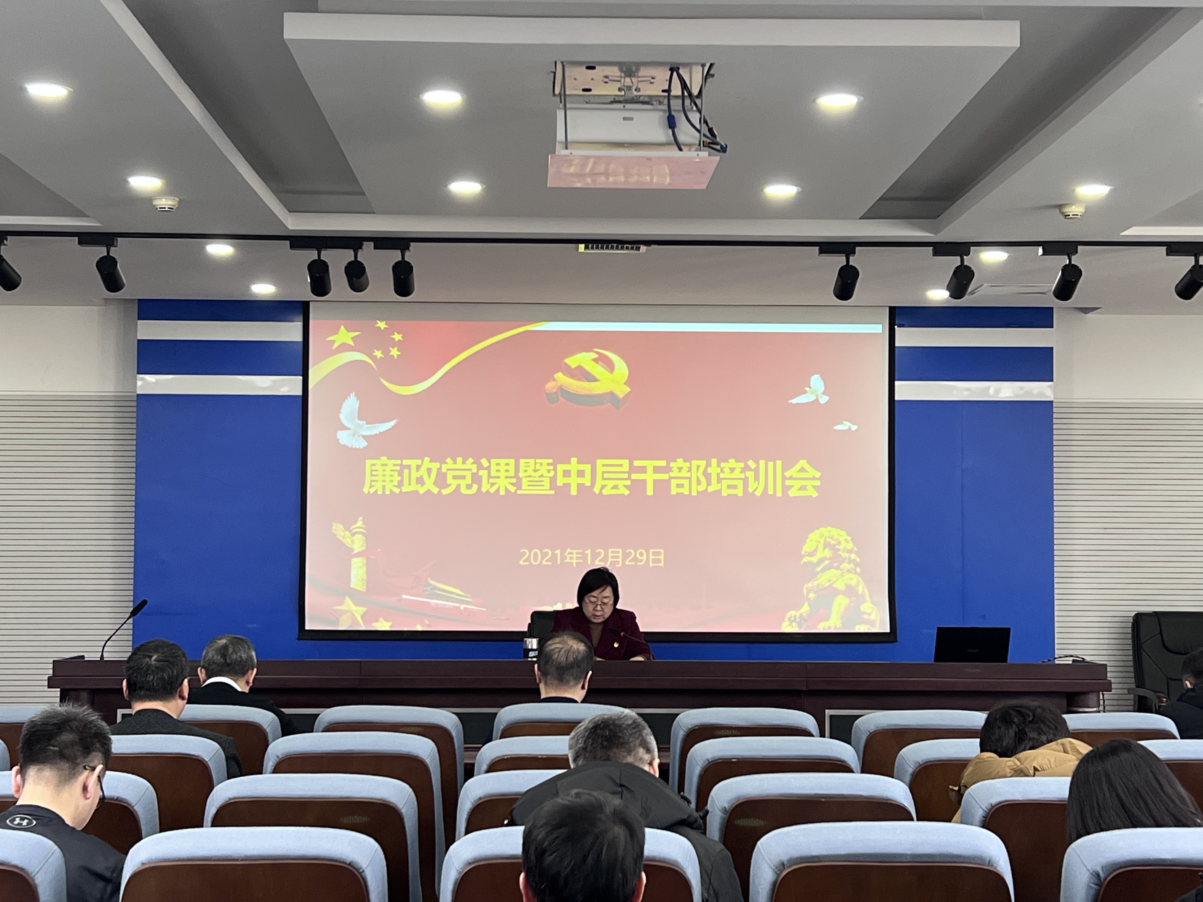 为全面贯彻落实从严治党总体要求,加强学院党风廉政建设工作,12月29日,学院党委书记高玉英为学院领导班子、全体中层干部讲授题为《强信念、抓作风、促发展》廉政党课。