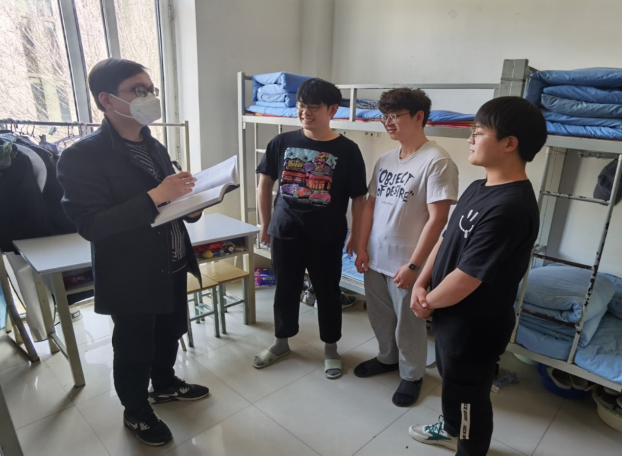 面对守护校内2600余名学生的重担,他以校为家,不分昼夜,连续奋战。他就像一颗螺丝钉,牢牢地钉在隔离转运的一线、钉在核酸检测的一线、钉在网格化管理的一线、钉在学生最需要的一线,与学生同吃同住,深入学生公寓,用心、用情、用力为学生解难题、办实事。面对未知的风险,他临危不惧、冲锋在前,已安排300余名学生进行健康监测,组织29次核酸检测,累计36500余人次。他经常忙到后半夜才能安顿下来,高负荷运转和过度熬夜使他血压持续升高、颈椎病日益加重,可他依然坚守在学生管理一线,用默默的行动筑牢校园疫情防控网,用共产党员的担当守护学生的生命安全和身体健康。