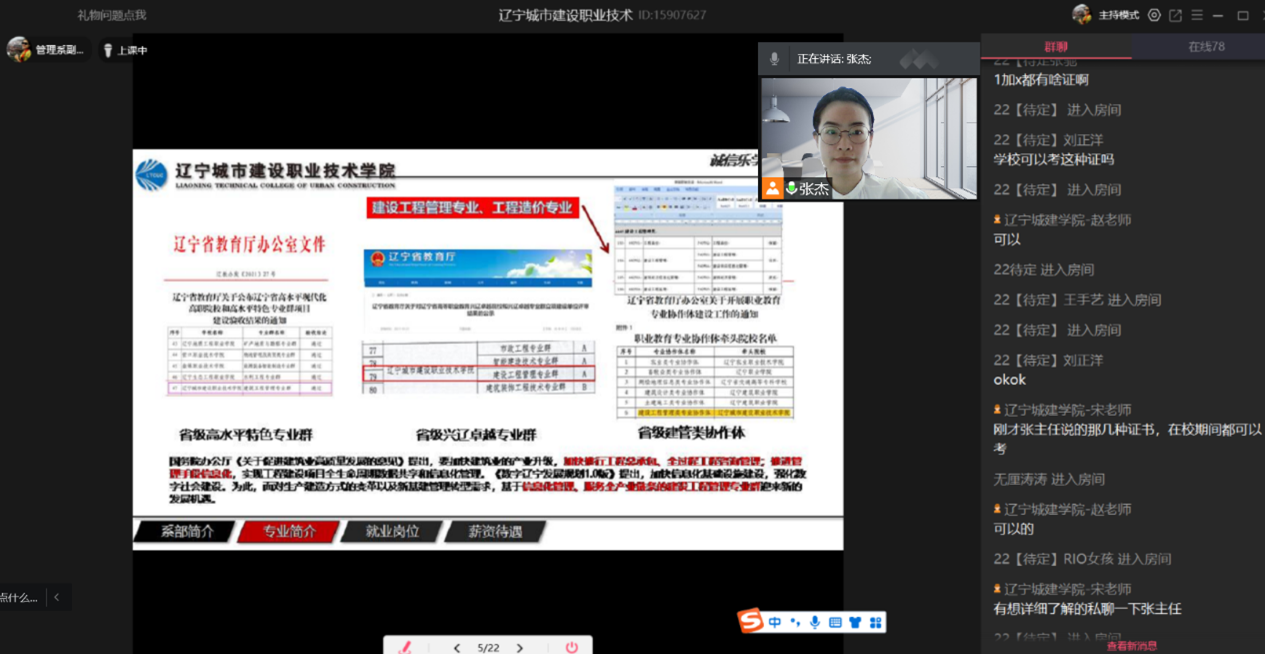 作为管理系工程造价教研室主任,他在疫情期间积极组织本教研室教师研讨在线教学方法,提高教学质量,保证教学效果。同时,作为建设工程管理卓越群建设的骨干教师,他积极承担双师型培训基地建设方案论证、教学软件采购、农村工匠培训建材编写、七大员继续教育教学资源制作、在线招生宣传等工作,积极与造价协会、行业企业探讨校企合作项目。师者,传道授业解惑也,课堂上,他结合实际把抗疫精神融入到每堂课中,在“腾讯课堂”里一个个鲜活的抗疫故事,在微信朋友圈里分享的一条条鼓舞人心的好消息,在课后作业中布置给学生研读的一份份疫情调研……在战“疫”这堂课上,他传递给学生的不仅是专业知识和专业技能,更是不畏艰险、敬畏生命的生活态度,特殊时期他赋予思政课程特殊的时代广度与厚度。