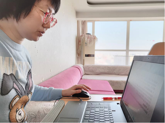 她是学院双职工家庭,双方父母都在外地,疫情期间,爱人刘明国驻守在疫情防控第一线,她居家照顾两个孩子学习起居的同时还要上好平均七个班周18的课。她每次课前都会通过各种感人的抗疫故事教育学生要怀有感恩之心,传播正能量,做自律、有担当的最美大学生。她是教研室主任,在疫情期间,充分利用学科专长,带领团队上好课的同时努力搞好科研。学院全面启动线上教学以来,她们积极备战在一线教学,精心准备授课内容,结合计算机学科建设特点,运用多元教学手段,形成了一批具有自身特色、教学效果良好的线上教学课程,让疫情期间的教学既有力度,更有温度。她带领团队完成了《信息技术与应用》课程,获批省级精品在线开放课,完成兴辽金课项目的立项任务书以及学院第二批国家十四五教材立项、课程思政团队项目的立项任务。她努力克服家庭与生活的种种困难,坚守在岗位上,以实际行动践行着党员的初心使命。