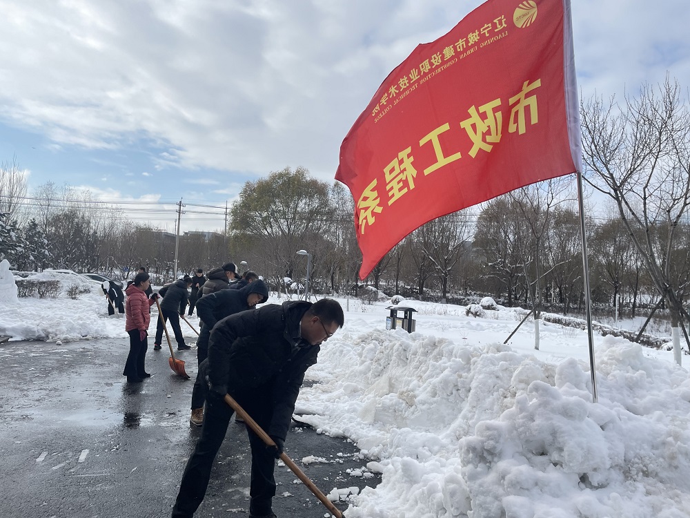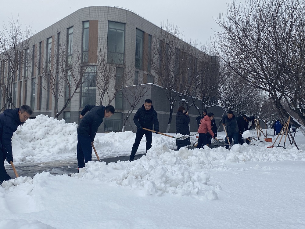 11月11日,60余名党员师生将教学楼与实训楼之间的桃林路拓宽,全力清理地面冰雪,恢复道路通畅,为营造良好的出行环境贡献力量。虽然天气寒冷、积雪很厚,却阻挡不住大家的除雪热情。党员师生踏着积雪,纷纷拿起铁锹、雪铲,分工明确、团结协作,认真完成除冰除雪任务。经过大家的奋战,桃林路路面积雪被全部清扫干净。看着“战斗”成果,党员师生都露出了满意的笑容,感受到了奉献和劳动的快乐。