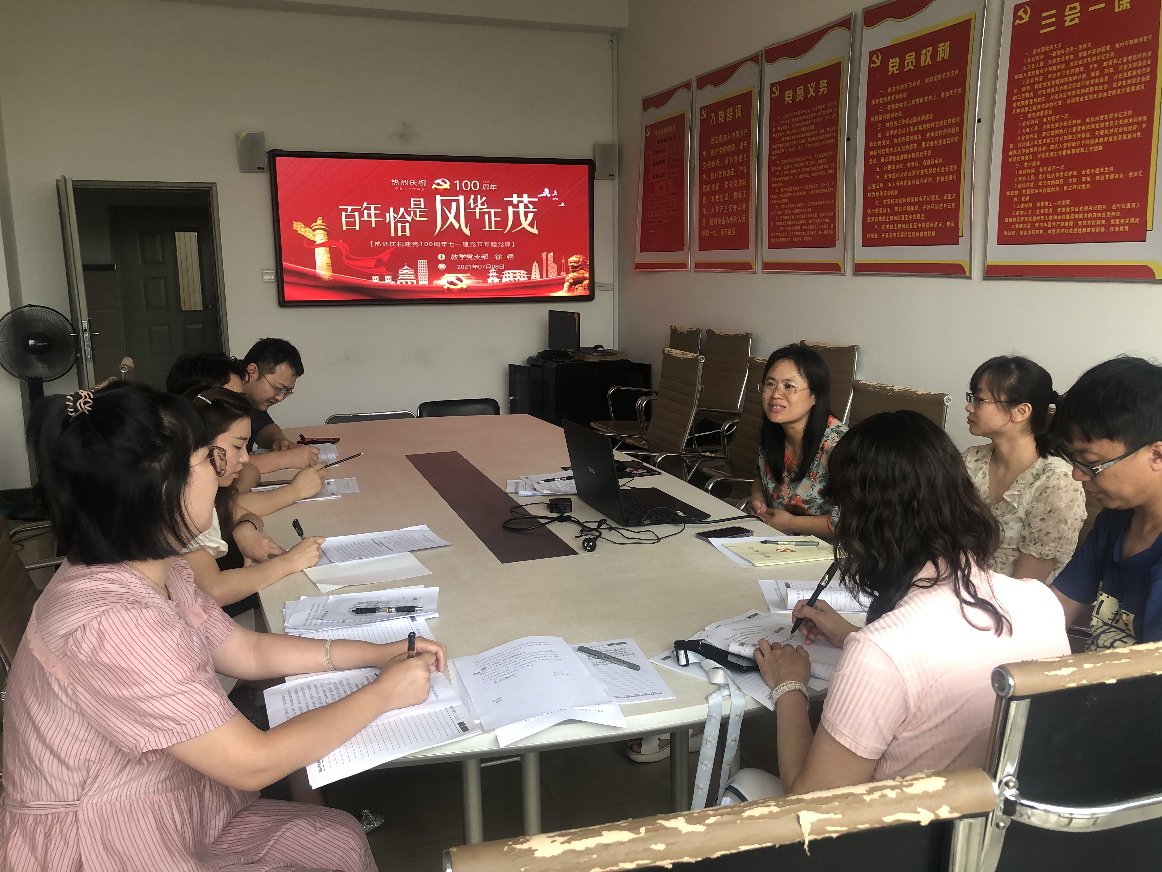 7月8日下午,教学党支部以《百年恰是风华正茂》为主题,开展了党史学习教育专题党课学习活动。本次专题党课由支部书记徐艳同志主讲,支部全体党员同志参加了活动。