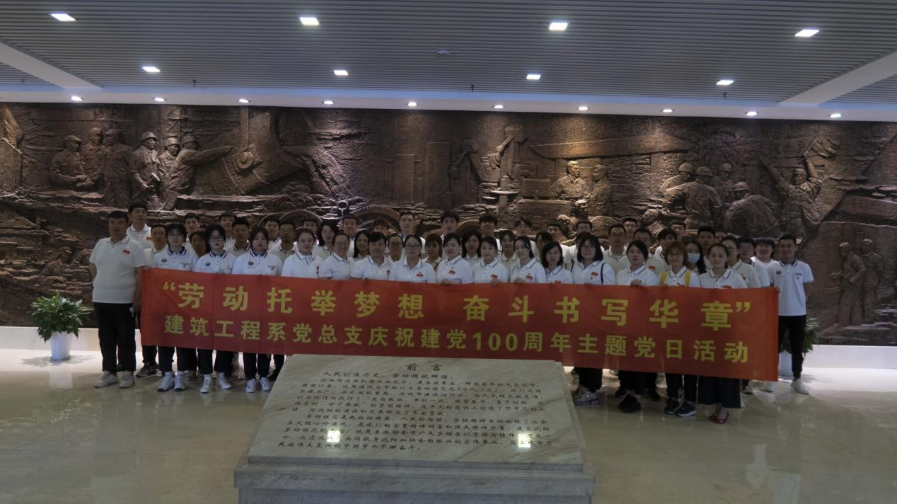为深入推进“两学一做”学习教育常态化制度化,落实学院“两学一做”学习教育安排内容,在建党100周年即将来临之际,6月18日下午,建筑工程系党总支组织全体党员教师和学生代表来到爱国主义教育实践基地——沈阳劳动模范纪念馆,开展以庆祝中国共产党成立100周年“劳动托举梦想,奋斗书写华章”为主题的党日活动。