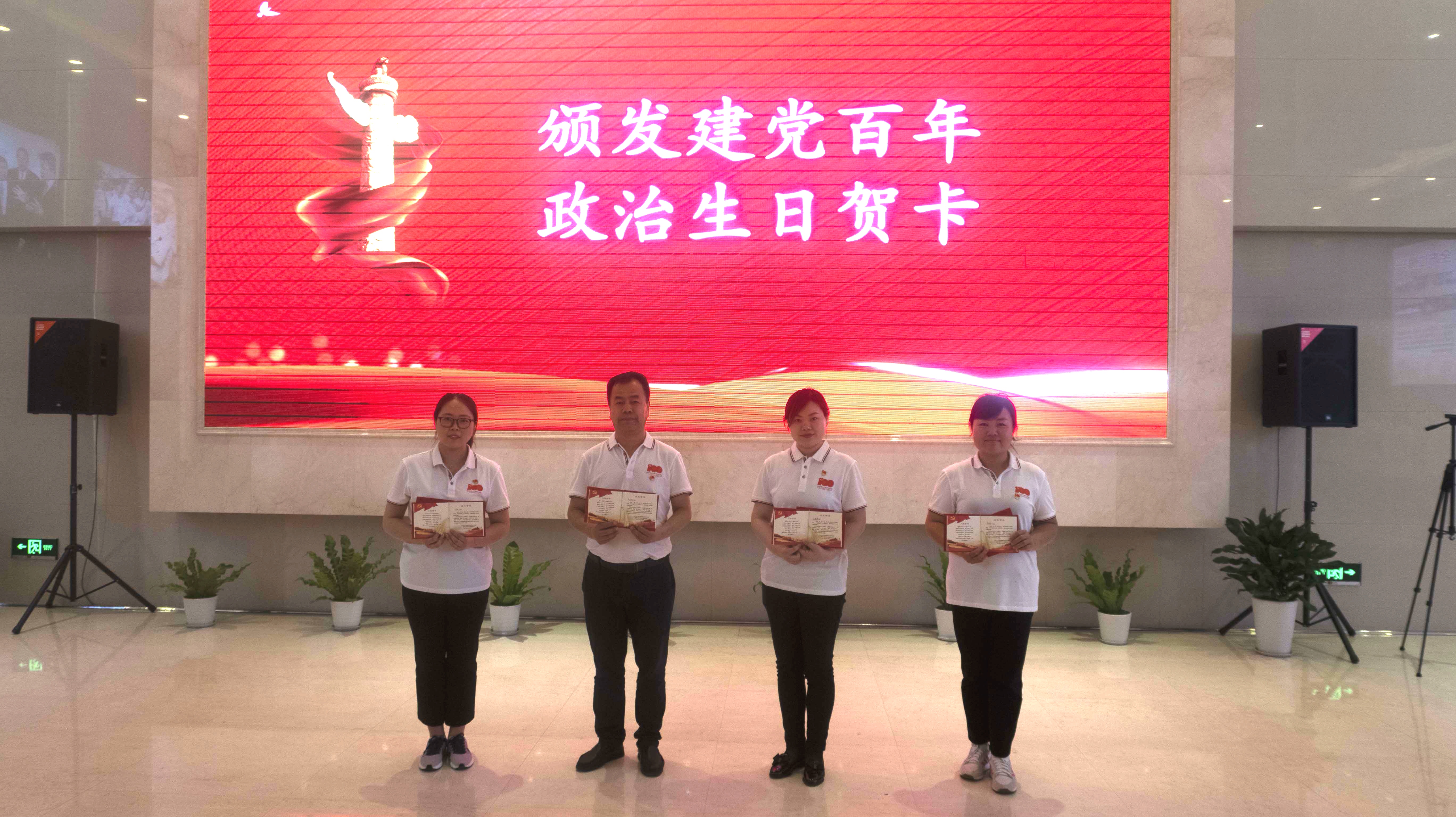 此次主题党日活动共有五项内容:一是参观展馆;二是重温入党誓词;三是为38名党员教师颁发政治生日贺卡;四是合唱歌曲《没有共产党就没有新中国》和《大中国》 ;五是邀请全国劳动模范——杨建华为师生做个人事迹分享。