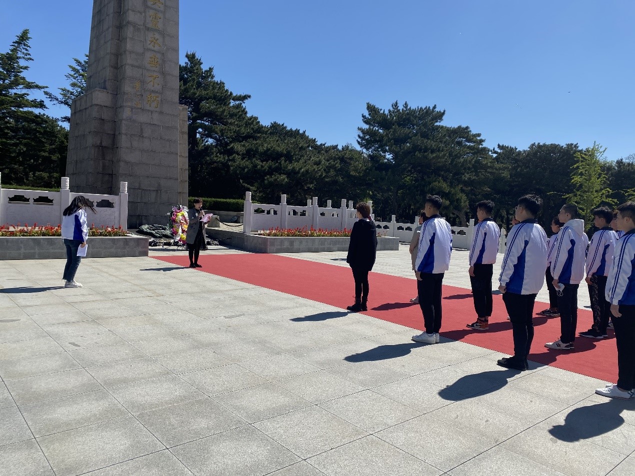 活动开始,主持人王菲同学为大家介绍本次活动的流程和意义,随后,全体师生在“抗美援朝烈士英灵永垂不朽”纪念碑前,奏唱国歌,入党积极分子代表向烈士敬献花圈,全体师生默哀3分钟向革命烈士寄托无限哀思。接着,学生党员刘宏怡代表发言,刘宏怡同学表示,我们的祖国之所以屡遭侵略而不败,民族之所以历经磨难而不衰,正是有着无数有着坚定理想信念的前辈们,流血牺牲,为我们创造了如今的和平年代和美好生活。作为新时代大学生,要牢记历史,坚定理想信念,把握时代的伟大机遇,努力学习专业知识,练就过硬本领,继承先烈遗志,为建设社会主义现代化强国贡献力量。最后,王琛书记向英烈们致悼词并号召党员学生们弘扬伟大抗美援朝精神,做到“四个正确认识”,切实做到学史明理、学史增信、学史崇德、学史力行,为实现“两个一百年”奋斗目标和中华民族伟大复兴的中国梦贡献力量。祭扫仪式结束后,全体师生瞻仰烈士烈士墓、烈士英名墙,进入抗美援朝纪念馆内参观学习,增强历史使命感和责任感,深刻感悟革命先辈们对理想事业的坚定信念和执着追求。