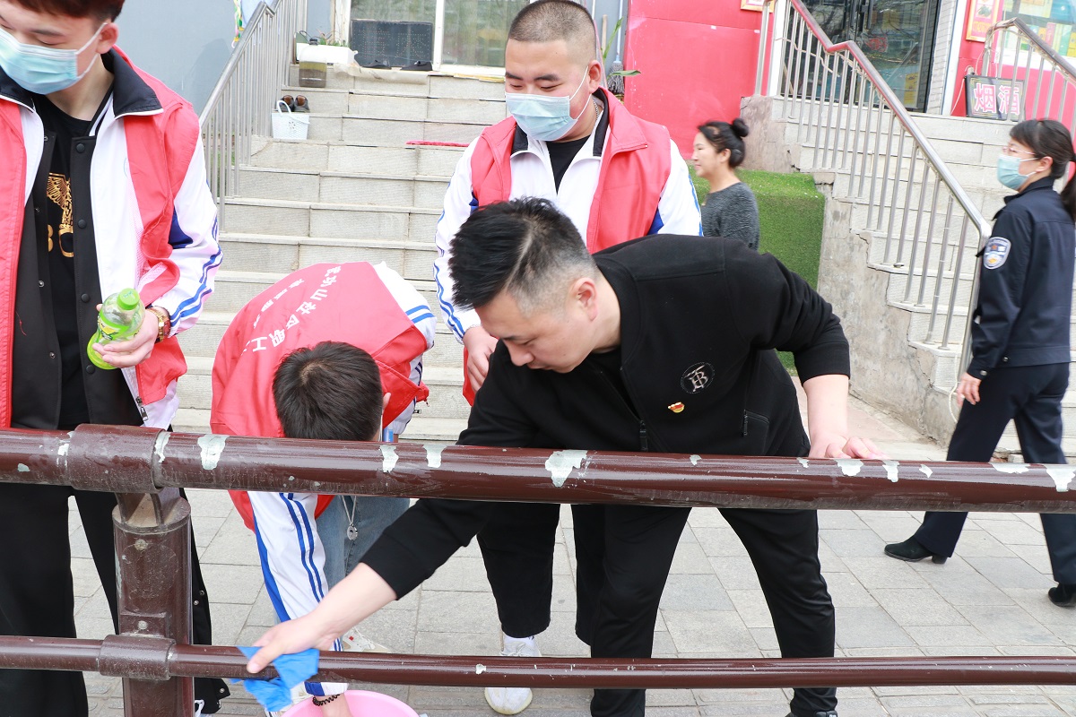 此次志愿服务主要是对陵东街上的护栏进行清洗及辖区走进楼道内的小粘贴、小广告的清理,同时走进社区驻街单位发放垃圾分类宣传单,学习并面向居民宣传垃圾分类箱如何使用。志愿服务中,同学们热情高涨,充分享受着劳动带来的乐趣。