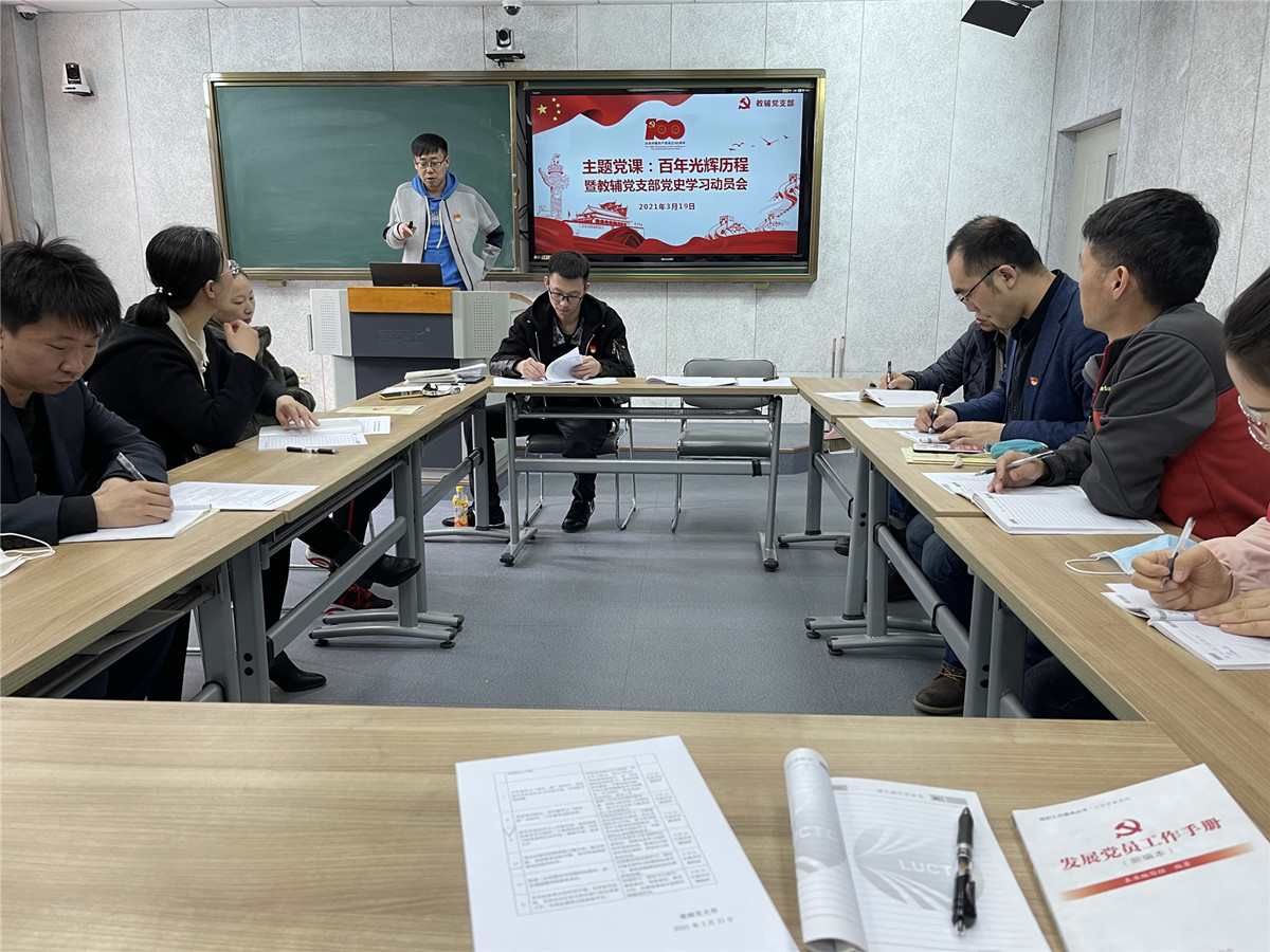 3月19日,教辅党支部召开“百年光辉历程”主题党课暨支部党史学习教育动员会,支部全体党员参加会议,入党积极分子列席会议。
