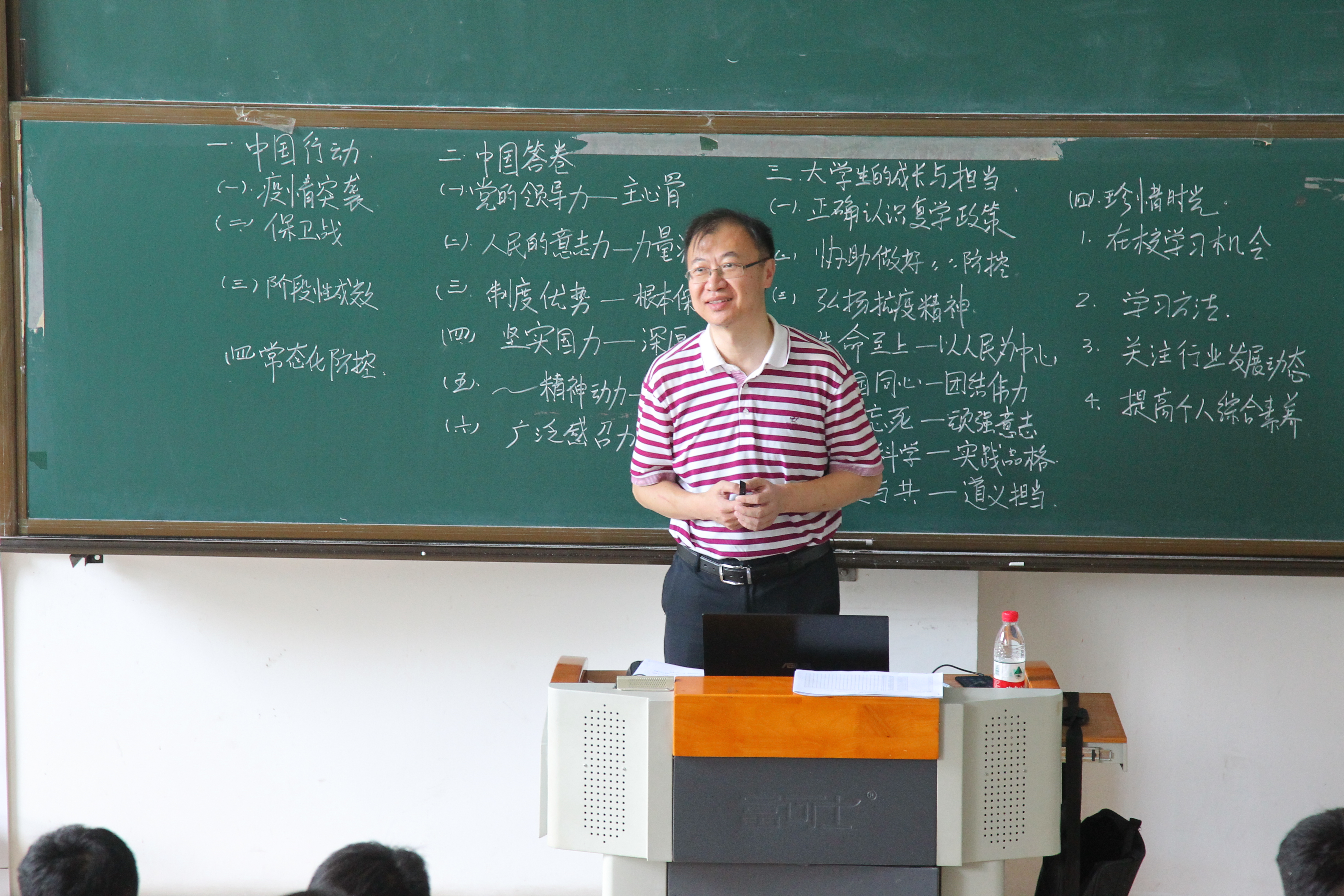 王斌院长在《感悟中国抗击疫情的伟大实践》报告中和学生们一起回顾抗疫大考及“中国答卷”,强调指出,面对全球性新冠肺炎疫情的挑战,我国充分展现了“中国精神、中国力量、中国担当”。常态化疫情防控阶段,希望同学们能永葆家国情怀,珍惜来之不易的防控成果,继续配合学院做好疫情防控工作;能自觉激发青春力量,勇担使命,把握学习成长机会,关注行业发展,争做担当民族复兴大任的时代新人。