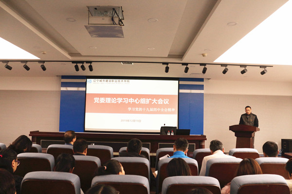 12月19日,我院党委理论中心组在第四会议室召开扩大学习会议,邀请中共省委党校专家赵岩教授作了题为“深刻学习领会党的十九届四中全会精神”的专题报告。学院党委班子成员、中层正副职干部、基层党组织书记、专职组织员、专职辅导员、专职思政教师参加会议。