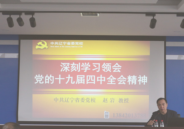 赵岩教授从“把握会议主题,充分认识中国特色社会主义制度是当代中国发展进步的根本制度保障;坚持制度自信,深刻领会中国特色社会主义制度和国家治理体系的显著优势和重点任务;增强行动自觉,认真学习贯彻党的十九届四中全会精神推动当代中国制度文明迈向新境界”等三个方面对十九届四中全会精神进行了全面系统、深入浅出地解读。赵岩教授的报告主题鲜明,内容丰富,既有纵向历史延伸,也有横向国际形势比较,既有深厚的理论基础,又有结合现实生活的鲜活案例,为我院深入学习宣传贯彻党的十九届四中全会精神、扎实推进“不忘初心,牢记使命”主题教育提供了有力指导。