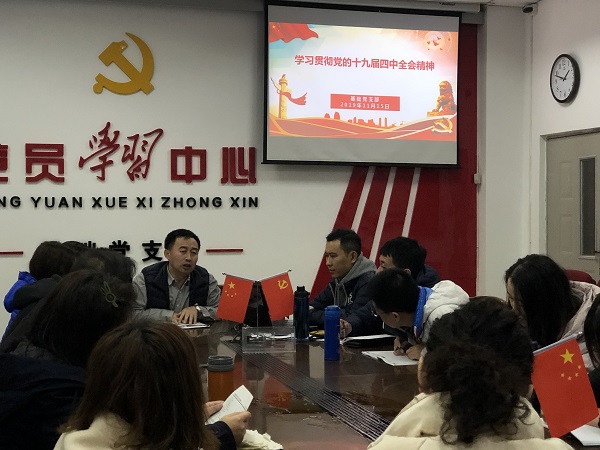 为贯彻落实《关于在第二批“不忘初心、牢记使命”主题教育中认真学习贯彻党的十九届四中全会精神的通知》,结合学院党委相关工作部署,基础党支部于11月15日下午,在B324召开了支部党员大会,全体党员教师共同学习了党的十九届四中全会精神。