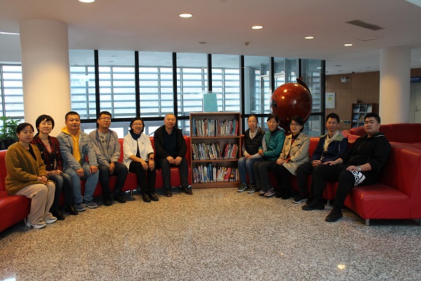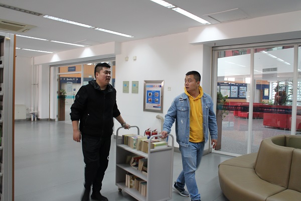 管理系党员教师于14:20在图书馆一楼集合。与图书馆工作人员简单沟通后,由系党总支书记牛佳同志对党员志愿服务工作进行了具体安排。