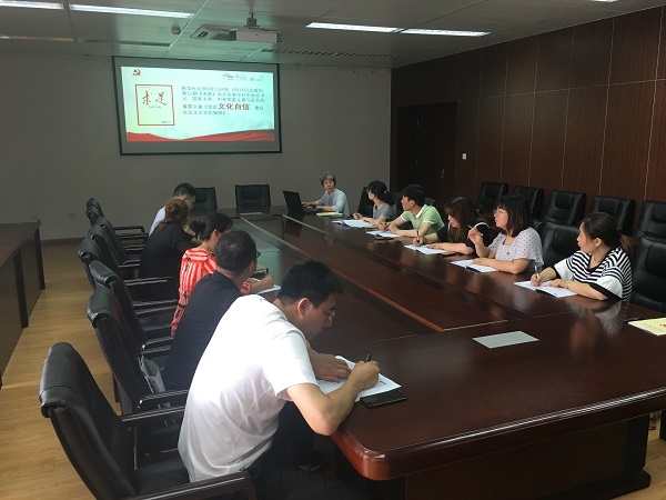 冯书记本次党课的主题是:文化自信。她围绕文化自信的提出、文化自信的含义、认真领悟文化自信的深刻内涵、文化自信的现实意义等4个方面进行了分享和讲解,通过文化自信让支部党员们读懂中国人的奋斗历程,读懂中国人的奋斗精神,产生家国一体、休戚与共的情感共鸣,进而鼓舞全体支部党员在奔向小康的路上去追梦,为实现中华民族伟大复兴去奋斗。