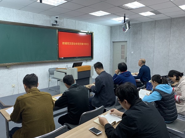 10月11日,教辅党支部全体党员在教学楼网络直播教室开展集中学习活动。