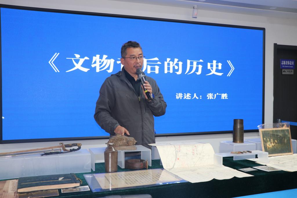 活动开始,师生们聆听了收藏家张广胜结合收藏的文物讲述背后的历史故事,让师生们感受到没有强大的国防就没有人民的一切,只有国家的强大,才能有人民的和平幸福生活。