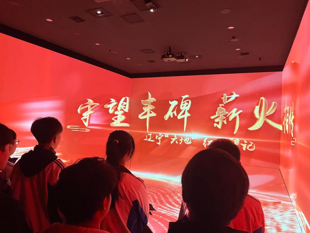 随后,在讲解员的带领下,所有师生前往辽宁红色六地展厅进行参观,辽宁是抗日战争起始地、解放战争转折地、新中国国歌素材地、抗美援朝出征地、共和国工业奠基地、雷锋精神发祥地,六大红色标志在百年党史中熠熠生辉。展厅内,用视频形式向所有师生全面展示和诠释了辽宁“六地”的丰富内涵及其所蕴含的精神价值,再现了辽宁人民在中国共产党领导下,万众一心,团结奋斗,在各个历史时期为党和国家事业所作出的卓越贡献、创造出的辉煌业绩、所谱写下的独具特色的辽宁篇章。