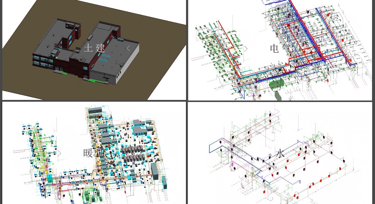 13.BIM全专业建模:利用BIM技术对土建、电气、暖通、水等专业创建BIM模型,进行三维协同作业,直观的三维可视化空间全方位考虑各专业间的布置、协调、空间利用、净高等难题。