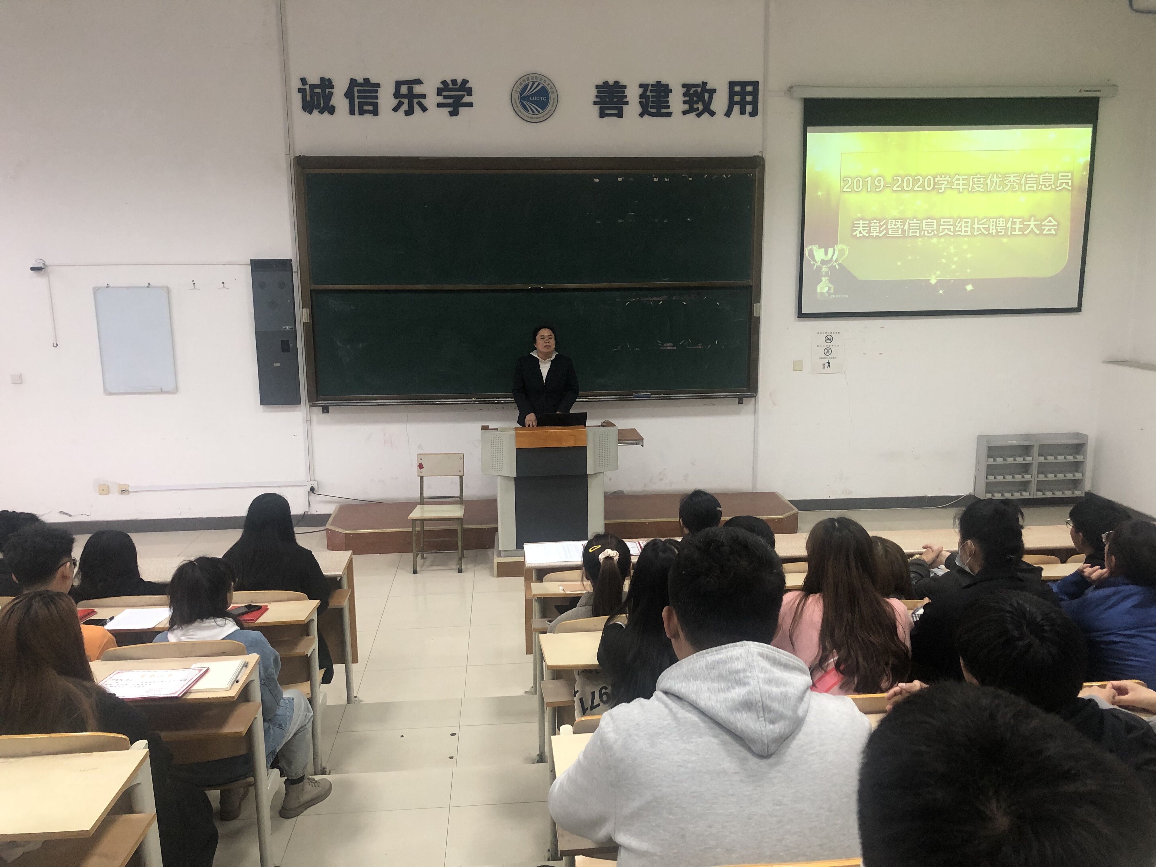 2020年10月21日,学院在教学楼阶梯401教室召开了2019-2020学年度学生信息员表彰大会暨信息员组长聘任大会。教育教学评价处处长徐艳、副处长鲁晓琦及全体信息员参加了会议。