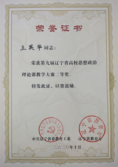 10月23日,第九届辽宁省高校思想政治理论课教学大赛决赛圆满结束,我院思想政治工作部王英华老师喜获大赛二等奖。