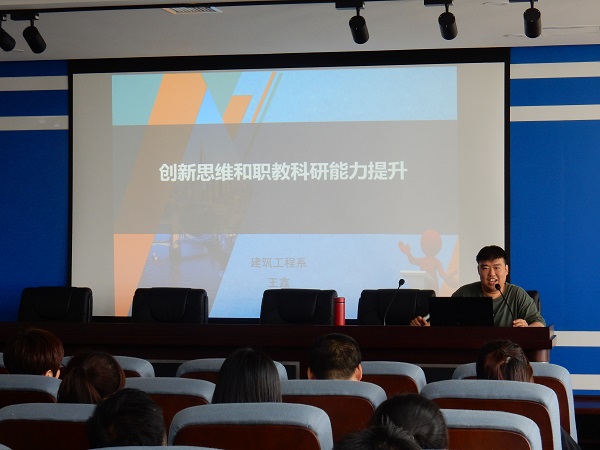 会上,王鑫老师以《创新思维和职教科研能力提升》为主题,结合个人项目研究、高水平论文发表的切身体会和经验心得,从教学科研的概念与意义、开展教育科研的方法与途径、成果发表的途径与技巧等方面深入浅出地为青年教师们进行了详细讲解,生动形象,通俗易懂,与会教师受益匪浅。