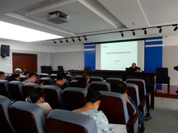6月28日下午,我院邀请职业教育和评估专家刘瑞军教授来学院作 “职业教育教学成果奖的凝练与申报”主题讲座,讲座由规划与科研处处长尹志富主持,全院具有副高级以上专业技术职称的教师聆听了讲座。