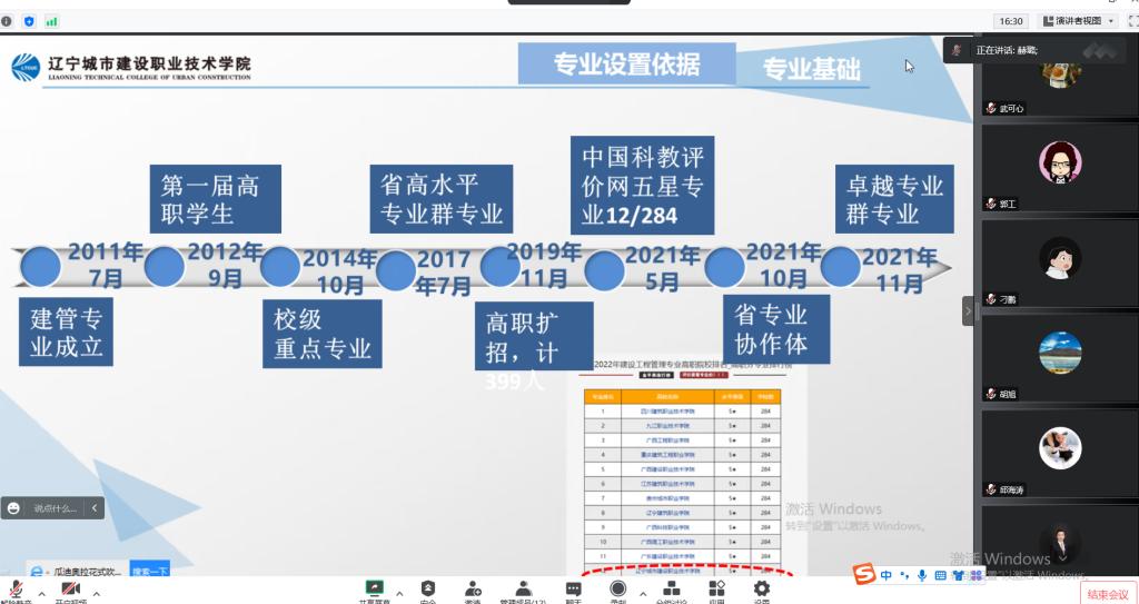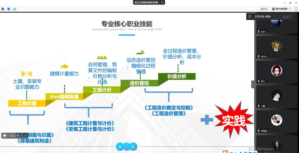 1月9日,建设工程管理类专业群专业指导委员会会议于线上顺利召开,房产与工程管理系主任刘杰、副主任张杰,各教研室主任及六位企业专家出席会议。